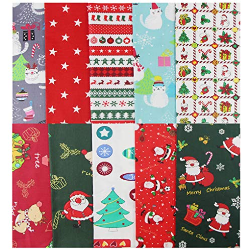 Jukway 10 Pezzi Taglia Grande Tessuto Cotone Natalizio 80x50 cm, Stoffa Natalizia Stampati Stoffa Cotone Tessuti per Patchwork Natalizi Cucito, Quilt, Decor Fai da Te, Lavoro Manuale (80 x 50 cm)