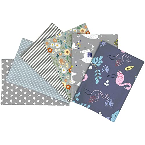 Jukway Tessuto di Cotone al Metro, 6 Pezzi 50 x 50 cm Stampati Tessuti e Stoffe a Metro 100% Cotone, per Cucito Creativo, Patchwork, Fai da Te, trapuntatura, Decorazione, Lavori manuali (Grigio)