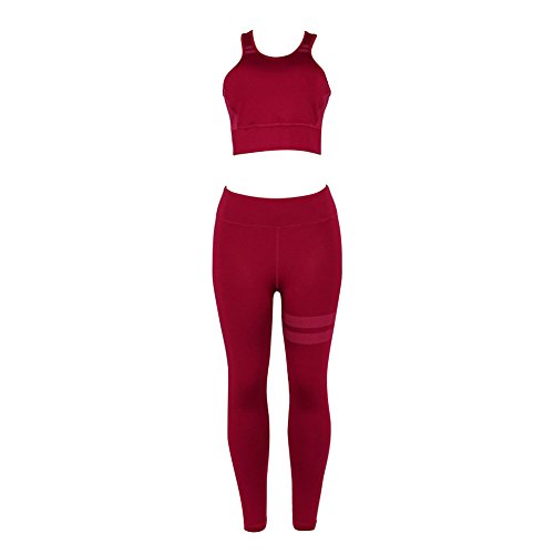 Juleya Set Fitness Donna Tuta Sportiva, Yoga, Running, Jogging, Palestra Fitness Outfit Allenamento Tuta Activewear Tuta Nero Rosso