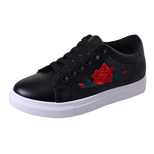 Juleya Scarpe da Ginnastica Basse Donna - Scarpe Basse da Donna Casual Sneaker con Lacci Scarpe da Ginnastica Trendy da Donna Scarpe con Ricamo a Fiori Bianco/Rosa/Nero