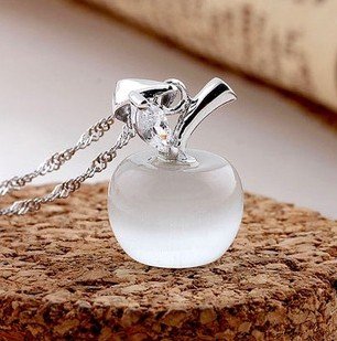 Julia & Joy Jewellery S925 - Collana con ciondolo a forma di mela J001 in argento Sterling e opale, colore: bianco