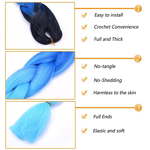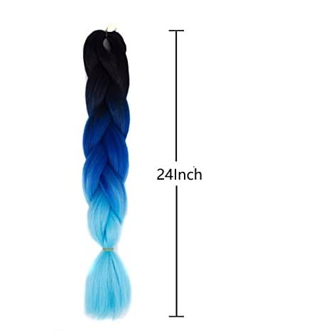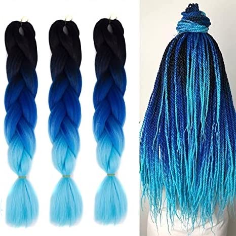 Juliyeh 3 extension sintetiche per trecce e trecce all'uncinetto, per capelli intrecciati e trecce intrecciate all'uncinetto, 3 pezzi, colore: nero/blu scuro/azzurro
