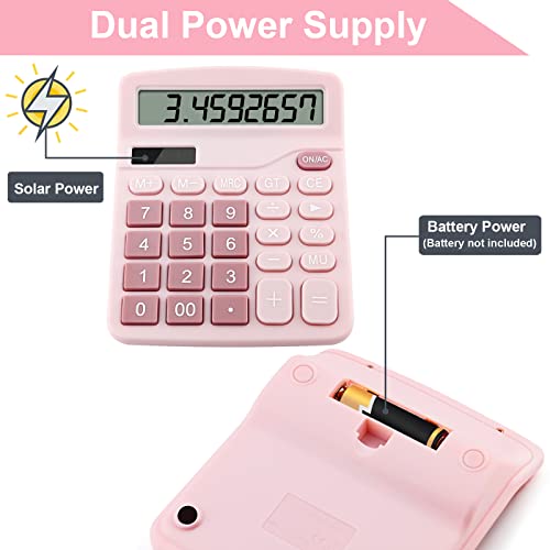 Juliyeh Grande calcolatrice da scrivania di base a doppia alimentazione a 12 cifre, solare e batteria, (colore rosa)