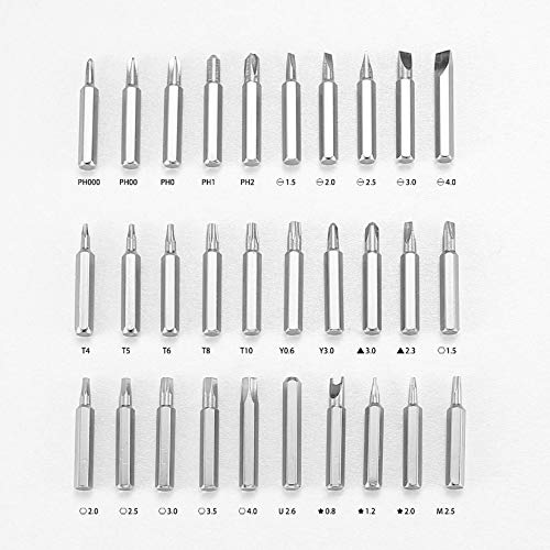Ampio utilizzo: questo set di riparazione per cacciaviti per orologi viene fornito con 30 diversi tipi di punte per cacciavite, adatte per diversi lavori di riparazione in molti settori diversi e sono perfetti per telefono, tablet, laptop, PC, smartphone, orologi, occhiali, controller per fotocame
