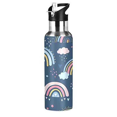JUMBEAR Bottiglia d'acqua arcobaleno disegnata a mano in acciaio inox a tenuta stagna, con coperchio in paglia, per fitness, palestra e sport all'aria aperta, 623,7 g