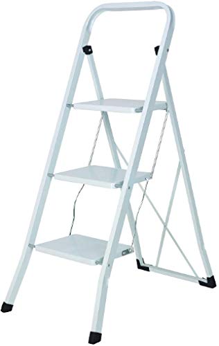 Jumbo Sgabello 3 gradini pieghevole in Acciaio Verniciato con Ampia Pedana, Piedini antiscivolo e Fermo di Sicurezza