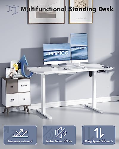 JUMMICO 100x60 cm Scrivania Regolabile in Altezza Con Presa USB e Vassoio Per Cavi, Scrivania Elettrica per Computer, Scrivania per Sedersi in Piedi Standing Desk Con 360° Ruote (Bianco)