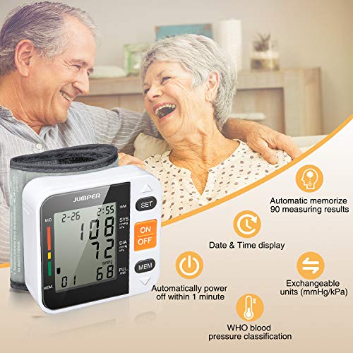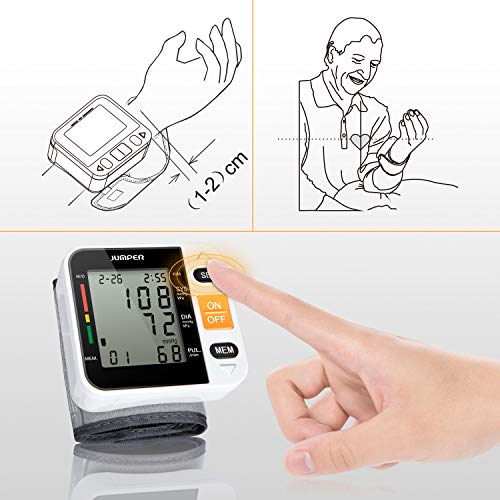 Jumper Monitor Automatico Della Pressione Sanguigna, Sfigmomanometro da Polso Digitale con Polsino Regolabile, Ampio Display LCD (Nero)