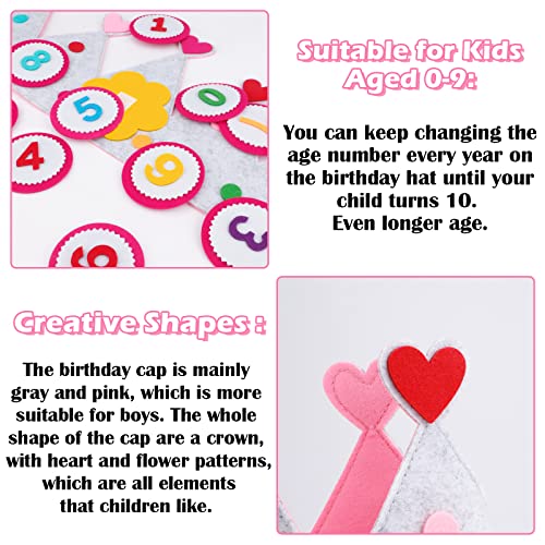【Adatto a bambini di età compresa tra 0 e 9 anni】 10 numeri 0f 0-9 su feltri rotondi significa 1-10 anni. Puoi continuare a cambiare il numero di età ogni anno sul cappello di compleanno fino a quando tuo figlio compie 10 anni. Età ancora più lunga