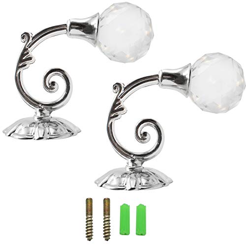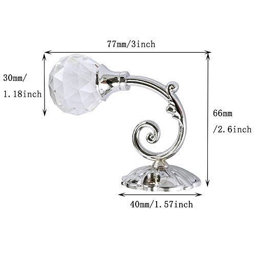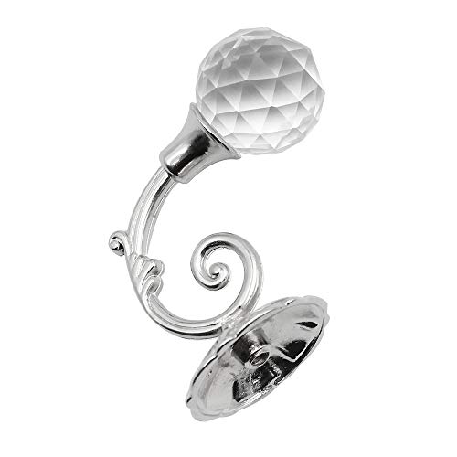 JUN-H, 2 Ganci Fermatenda in Metallo con Sfera di Cristallo, Ganci per Tende, Belli e Delicati (Argento)