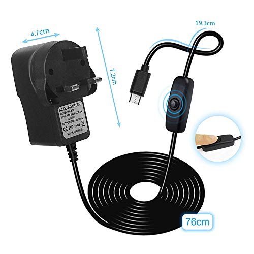 5 V 3 A di alimentazione con cavo interruttore on/off. Aiuta a prevenire l'usura del connettore USB a causa di frequenti tiri e inserimento del cavo USB. Lunghezza: 105 cm con IC multiplo protezione intelligente: protezione da cortocircuito, sovracorrente, protezione da sovratensione, ecc.