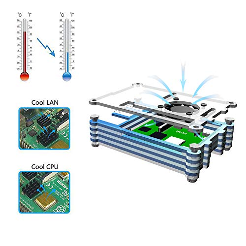 Jun_Electronic per Raspberry Pi Model 4 B Case con Ventola, Adattatore da HDMI a Micro HDMI, Cavo Micro HDMI e Dissipatore di Calore, Lettore di Schede