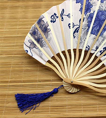 SQUISITO: Questi ventilatori a mano sono fatti di tessuto e bambù di alta qualità, rendendoli leggeri come piume, duraturi e convenienti.Ogni ventilatore di bambù è composto da 17 robuste costole di bambù e opere d'arte con decorazione squisita. Il modello di fiore è squisito e squisito, e la borsa è appositamente progettato per il ventilatore di bambù pieghevole.