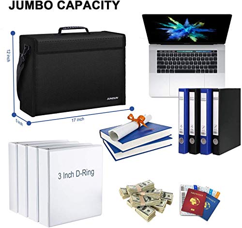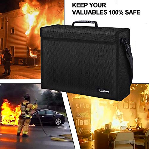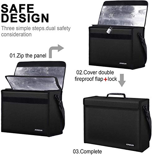 JUNDUN Borsa portadocumenti ignifuga, 43 x 30 x 13 cm, resistente al fuoco, impermeabile, con lucchetto a combinazione per documenti A4, laptop, denaro e oggetti di valore
