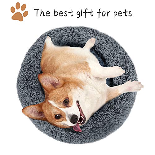 JuneJour Cuccia per Gatti Letto per Cani Rotondo Ciambella Morbido Peluche Tondo per Animali Domestici Gatto Morbido Lettino per Gatti per Cani, 50cm,Grigio scuro