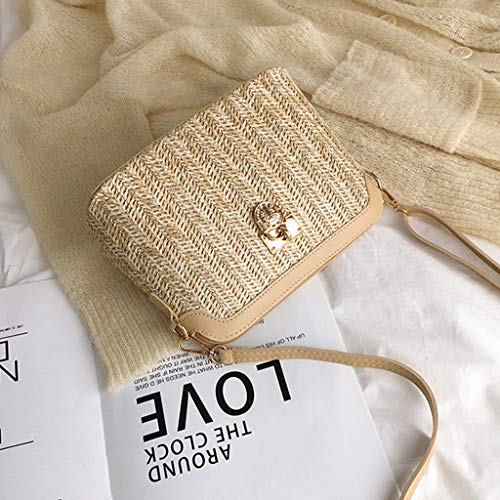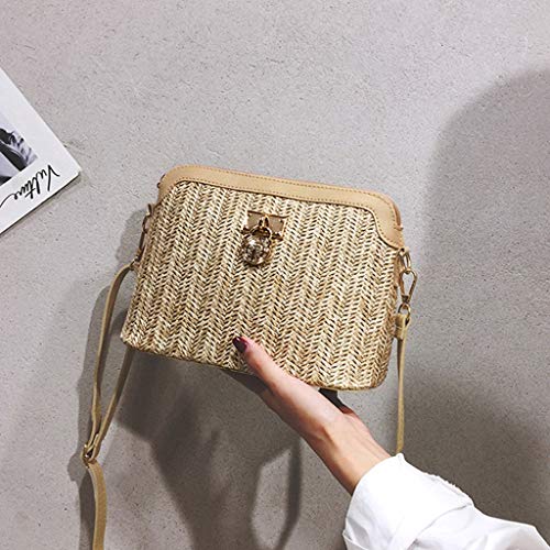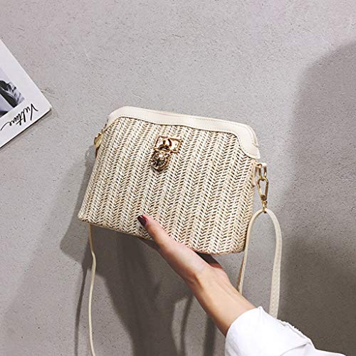 JunengSO Borsa a Tracolla Intrecciata in Paglia Intrecciata per Donna, Borsa a Tracolla di Moda delle Donne