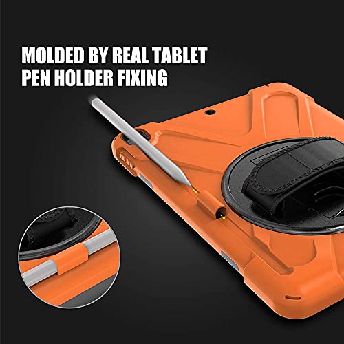 Junfire Custodia per iPad 9/8/7 Generazione, Antiurto con portapenne, Girevole a 360 Gradi con Supporto, Tracolla e Custodia a Tracolla, Cover per iPad 10.2 pollici 2021/2020/2019, Arancia