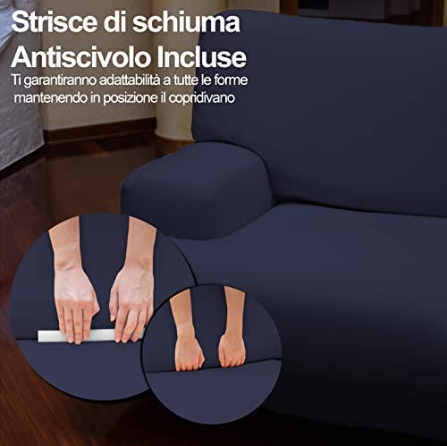 Jungle Home | copridivano 2 posti universale (145-185cm) | fodera protettiva elasticizzata per tutte le tipologie di divano con braccioli | tessuto di alta qualità lavabile e antiscivolo | blu navy