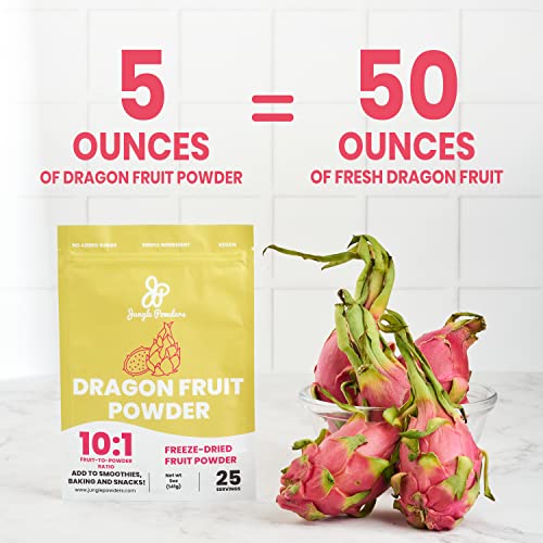 Jungle Powders Polvere di frutta del drago liofilizzata 141 g, estratto di pitaya rosa in polvere, senza zuccheri aggiunti, additivi, riempitivi e coloranti alimentari naturali senza OGM