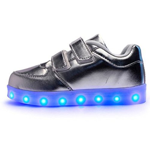 Junglest [Presente:Piccolo Asciugamano] Argento EU 32, Lampeggiante Luminoso LED Studenti Stivali Bambini Scarpe Unisex Maniera Glow ricaricabi