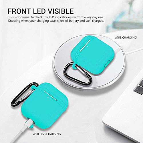 Junlic Custodia in Silicone per Case delle AirPods, [10 in 1] Custodia Protettiva Compatiblile con Apple AirPods 1 & 2 (LED Anteriore Visibile & Funziona la Ricarica Wireless) - Menta Verde