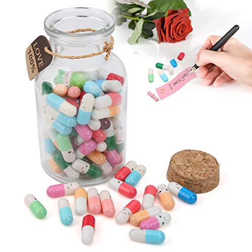 Junlucki Capsule Letters Message in a Bottle | 100pz Capsule Letters Messaggio Pillole | Lettera di Messaggio in Bianco della Capsula Regali di Bottiglia di Vetro dei Desideri per Amanti/Amici/Madri