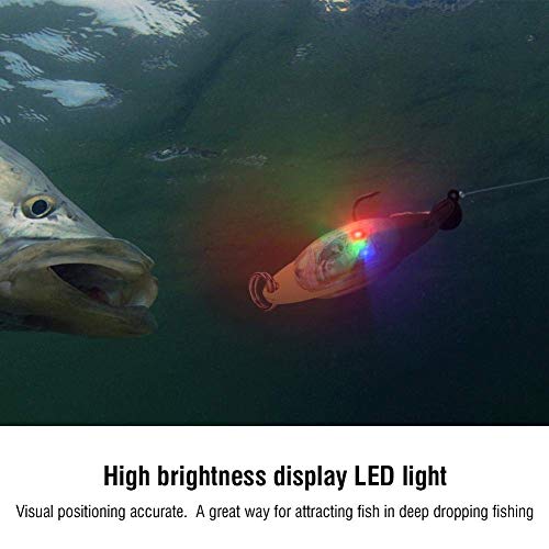 MATERIALE DI QUALITÀ: il guscio delle esche da pesca a LED è realizzato in resistente plastica ABS dura con rivestimento in metallo anticorrosione. Inoltre, tutte le parti sono sigillate ermeticamente e la luce a led è resistente alle alte pressioni, è possibile utilizzarla in acque profonde, il che la rende una buona scelta sia per la pesca in acqua salata che in acqua dolce.