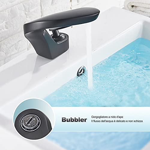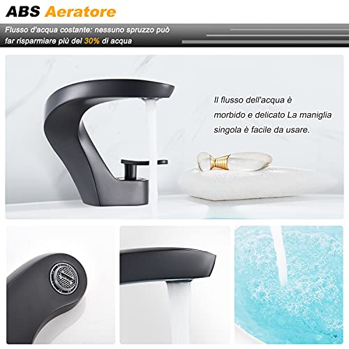 JUNSHENG Rubinetto Lavabo Bagno Nero,Curvo Miscelatore Monocomando Lavabo Bagno,Acqua calda e fredda,Ottone massiccio