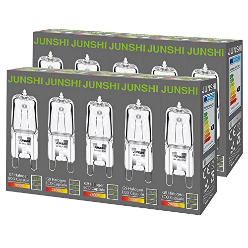 JUNSHI Lampadine Alogene G9 28W 230V,370lm,2800K Bianco Caldo,Dimmerabile,Confezione da 10