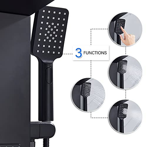 JUNSOTTOR 6004 - Pannello doccia a LED, in acciaio inox, per doccia a pioggia, soffione per doccia, Nero