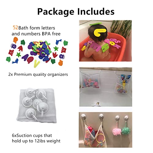 Junxave Lettere Bagno Numeri con Rete di Stoccaggio, 36 Lettere e Numeri da Bagno (A-Z, 0-9), 2 Robusti Ganci Autoadesivi, Migliori Gioco Educativi di Bagno, Adatto Bambini di età Superiore ai 3 Anni