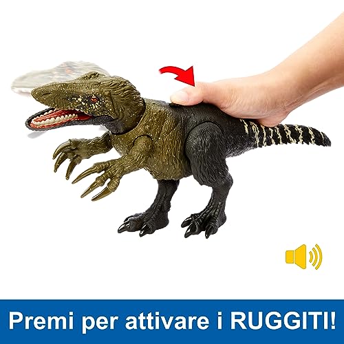 Jurassic World - Dinosauro Orkoraptor Ruggito Selvaggio, action figure snodata con azione di attacco e ruggito roboante, giocattolo per bambini, 4+ anni, HLP21