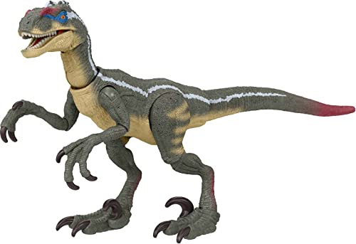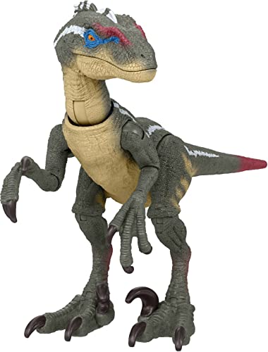 Design autentico. La figura lunga 19,6 cm del Velcoiraptor di Jurassic Park III è accurata al cinema e progettata a una scala di figure umane da 3,7 pollici, pronta a dominare i riflettori in qualsiasi display. Articolazione