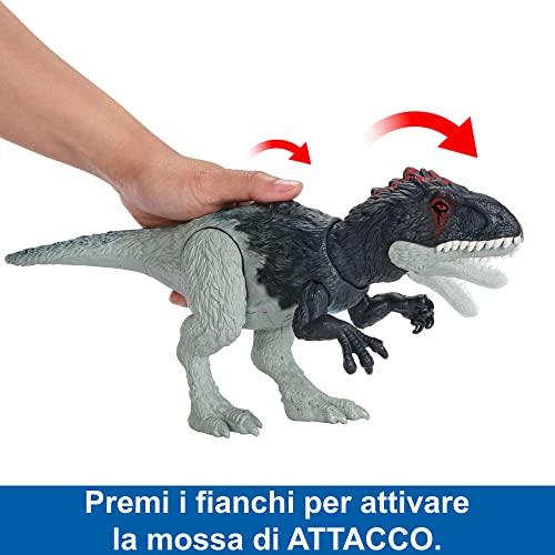 Jurassic World - Ruggito Selvaggio, Eocarcaria, con suoni e mossa d'attacco, dimensioni medie, snodato con gioco digitale, Giocattolo per Bambini 4+ Anni, HLP17
