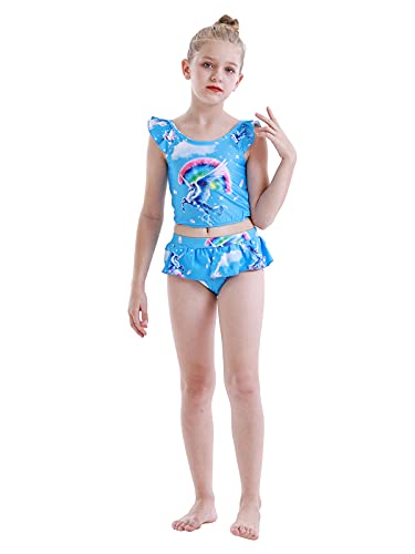 Jurebecia Costume da bagno da bambina, con unicorno, 2 pezzi, tankini, costume da bagno separato da spiaggia, per bambini 2-12 anni, Blu 03., 9-10 Anni