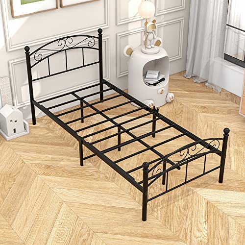 JURMERRY Struttura per letto singolo 3 piedi con testiera e pediera in metallo stile moderno in acciaio, doghe resistenti per letto di ricambio a molla 90x190cm (texture nera)