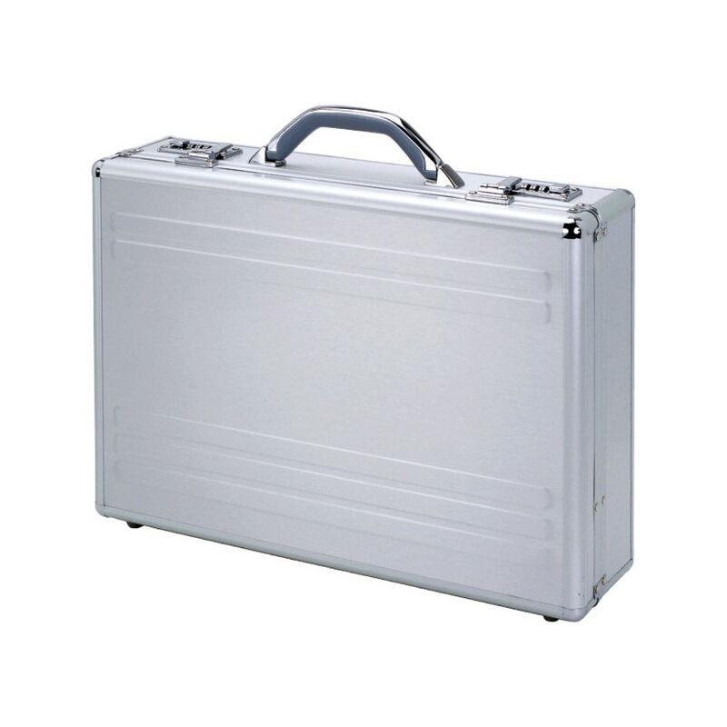 Custodia per laptop nella versione in alluminio. Bordi rinforzati, maniglia resistente e 2 serrature a combinazione. Tracolla removibile. Protezione portatile rimovibile. Scomparto organizer rimovibile con 2 scomparti A4, 3 scomparti per biglietti da visita, 4 portapenne e 3 scomparti portaoggetti chiudibili con velcro.