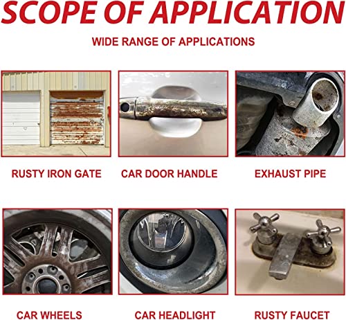 【Ampia applicazione】 Soluzione antiruggine ideale per applicazioni domestiche, automobilistiche, industriali, flotte, aeronautiche, marine, camper e agricole. Applicare ovunque si veda la ruggine per fermare definitivamente la ruggine e impedire che la ruggine si diffonda ulteriormente.