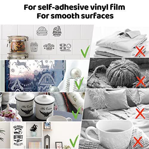 Ampia Applicazione: Funziona con vinili adesivi per interni / esterni, il pellicola di trasferimento in vinile può essere trasferimento su qualsiasi superficie liscia come legno, tazza, adesivi per cartelli, plastica, finestre, pareti, ceramica, vetro, ecc.