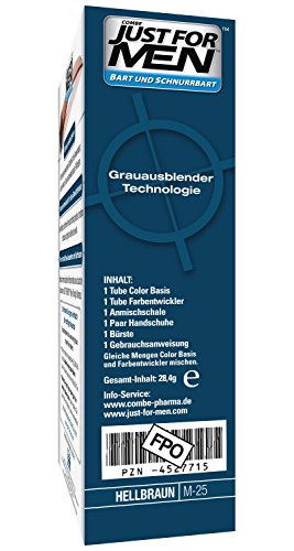 Just For Men Brush in Color Gel Formel Barba e Baffi, marrone chiaro, confezione da 3 (1 x 28 g)
