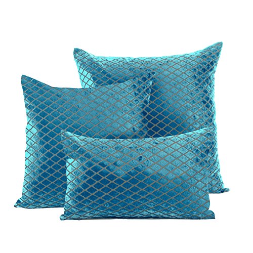 Just Contempo - Copricuscino in Velluto, Tessuto a Scacchi, Stile Moderno, Morbido, Colore: Nero, Poliestere, A Rombi, Foglia di tè, Fodera per Cuscino 30 x 48 cm