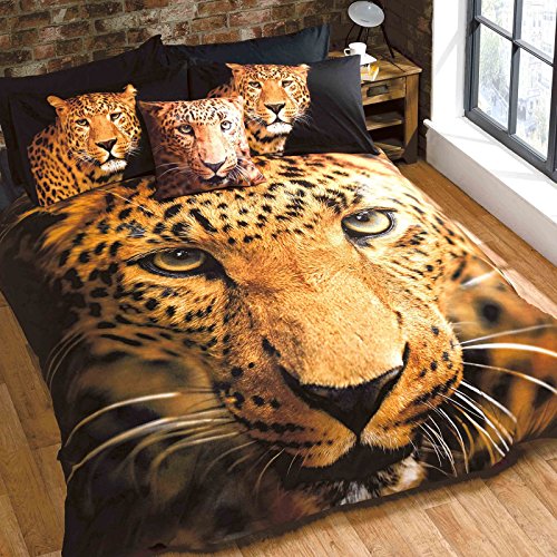 Just Contempo - Set Copripiumino Matrimoniale, stampa fotografica di leopardo, effetto 3D, colore: oro/nero/marrone, King, oro marrone nero