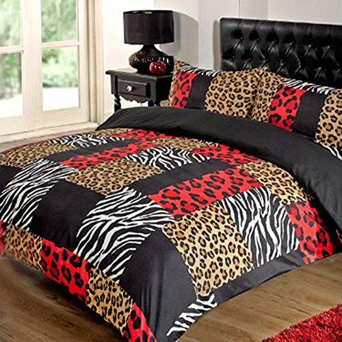 Just Contempo - Set con Copripiumino Reversibile con Stampe Animalier, Motivo zebrato e Leopardato, Poliestere, Rosso (Oro/Bianco/Marrone), copripiumone per Letto Matrimoniale (Moderno)