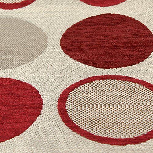 Just Contempo - Cuscino Decorativo Imbottito per Letto o Divano, in ciniglia, con Motivo Contemporaneo a Cerchi, 43 x 43 cm, Poliestere, Rosso (Bordeaux), Fodera Cuscino 17" x 17"