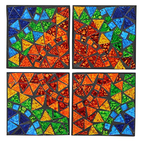 Sottobicchieri quadrati a mosaico artistico, commercio equo e solidale, con piedini in gomma antiscivolo e supporto