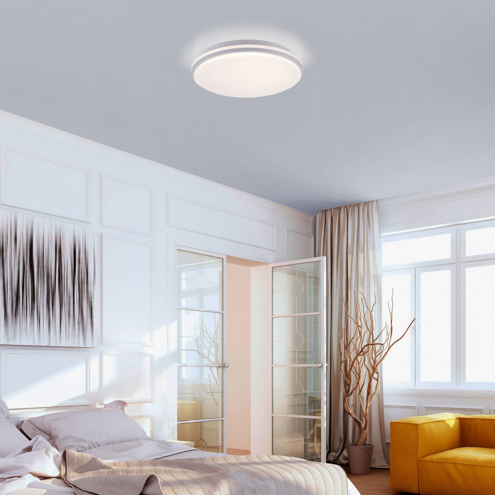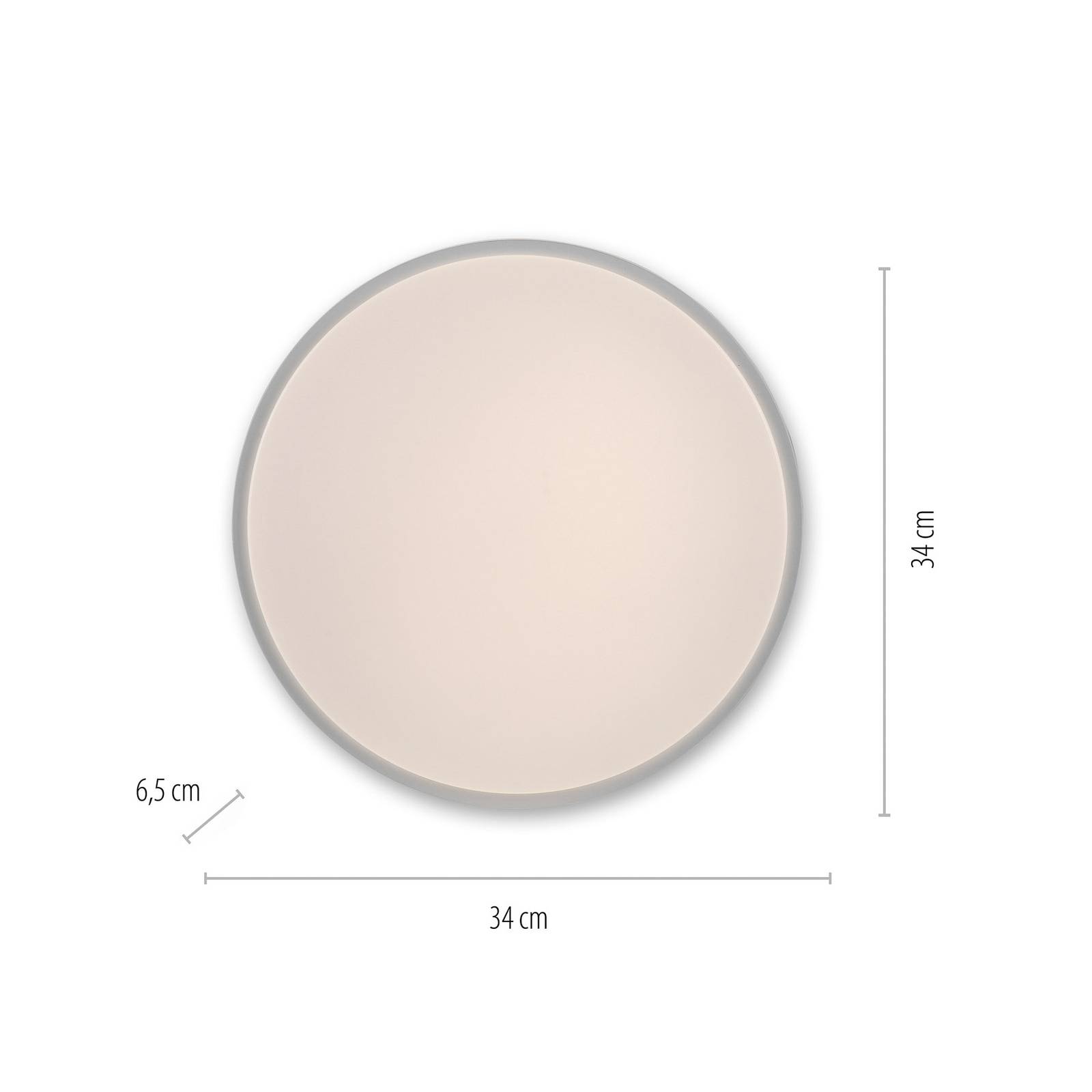 Plafoniera LED rotonda Colin, dimmerabile tramite interruttore a parete Rotonda, semplice e funzionale, la moderna plafoniera LED Colin fornisce un'illuminazione uniforme in qualsiasi salotto. Senza abbagliamento, la luce bianca calda si diffonde nell'ambiente, sia in corridoio che in soggiorno o anche in camera da letto. Grazie alla tecnologia Switchmo dimmer, la luminosità della luce può essere regolata in tre fasi tramite l'interruttore a parete. - Senza funzione di memoria