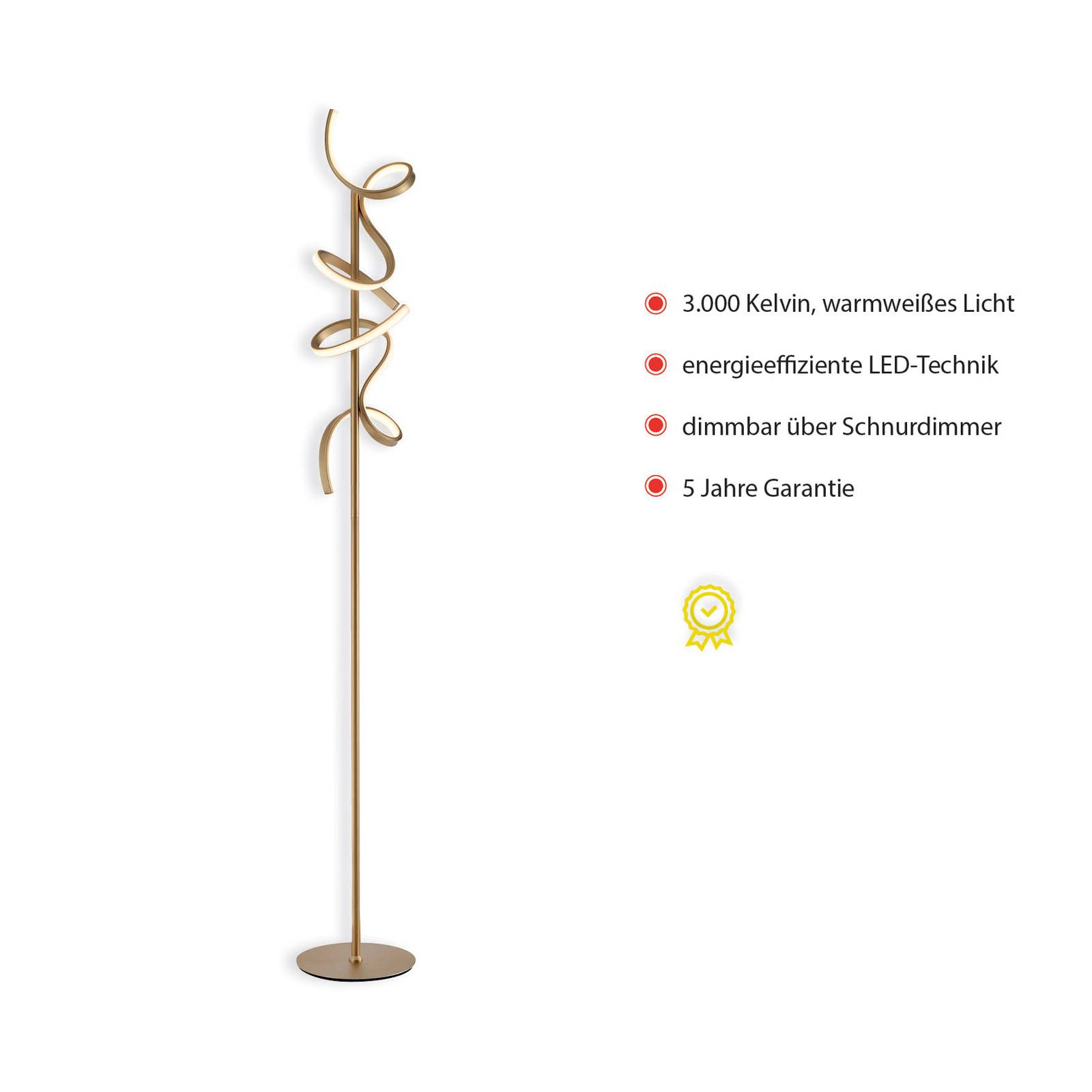JUST LIGHT. Piantana LED Curls, ottone satinato;