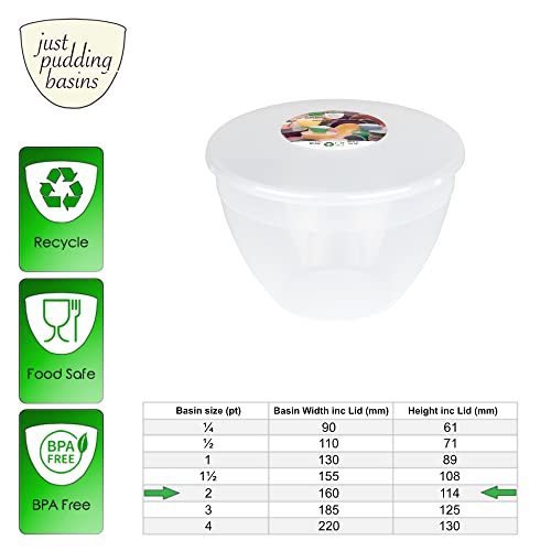 Just Pudding Basins Limited - Ciotole con coperchio, confezione da 3, plastica, trasparente, 1,14 l