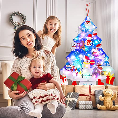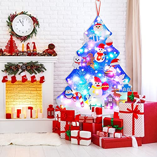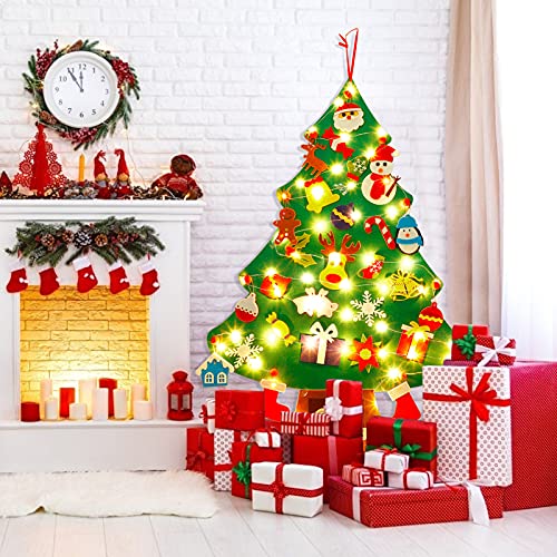 JUSTDOLIFE Albero di Natale in Feltro per Bambini, Doppia Faccia Feltro Albero Natale con 33 Pezzi Ornamenti Staccabili & 2 x Luci Stringa da 16,4ft, per Regali per Bambini e Decorazioni Natalizie