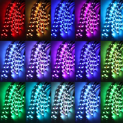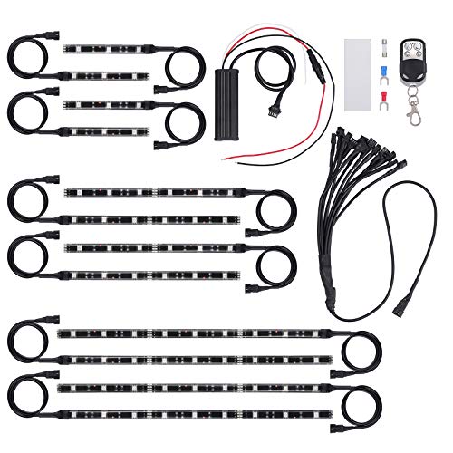 Justech 12pcs Luci Strisce 15 Colori RGB 72LED Neon Decorazione Luci LED Interne Moto con Telecomando wireless Luce dell'atmosfera Impermeabili Flessibile [Classe di efficienza energetica A+]